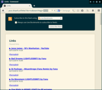 • Filtering RSS feeds: RSS feeds and picture wall can also be restricted to only return items matching a text/tag search. For example, search for photography (text or tags) in Shaarli, then click the RSS Feed button. A feed with only matching results is displayed.
